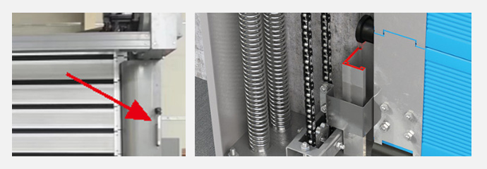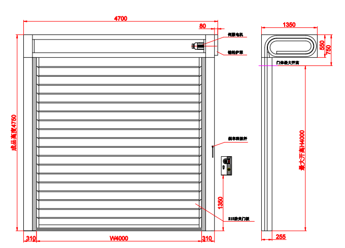 硬質(zhì)快速門整體外觀;采用寶鋼鍍鋅板經(jīng)激光切割、數(shù)控折彎而成的成型的渦輪系統(tǒng)、導(dǎo)軌系統(tǒng)、防護(hù)外罩,長久不生銹,外部美觀、防塵、輕松清潔傳動系統(tǒng);一體式的傳動系統(tǒng),使得門體兩側(cè)均勻受力,整體運(yùn)行通暢。